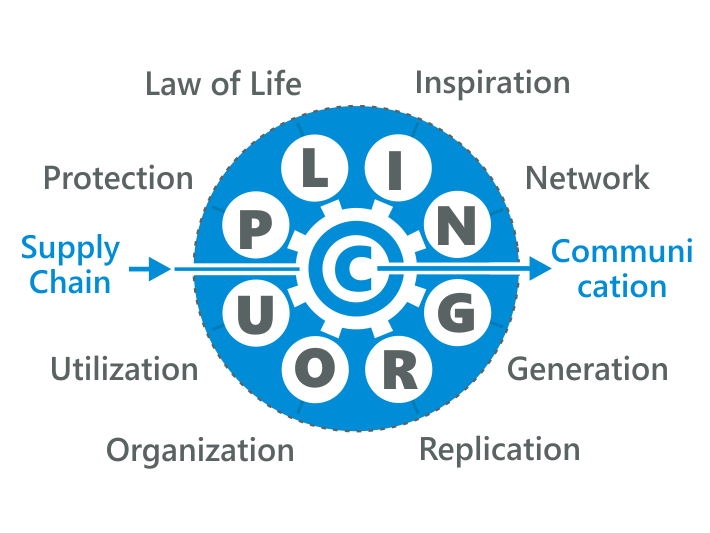 Dazu kommen S = Supply Chain und C = Communication (intern und extern) als Achse.